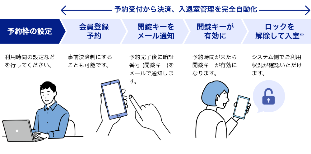 RemoteLOCKと連携したスマートロック連動予約システムリザエンのデモサイトです。